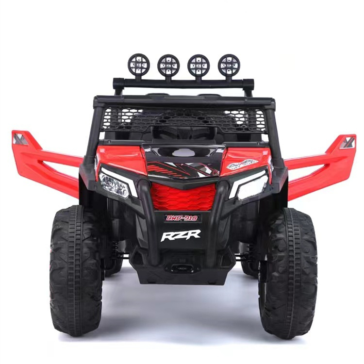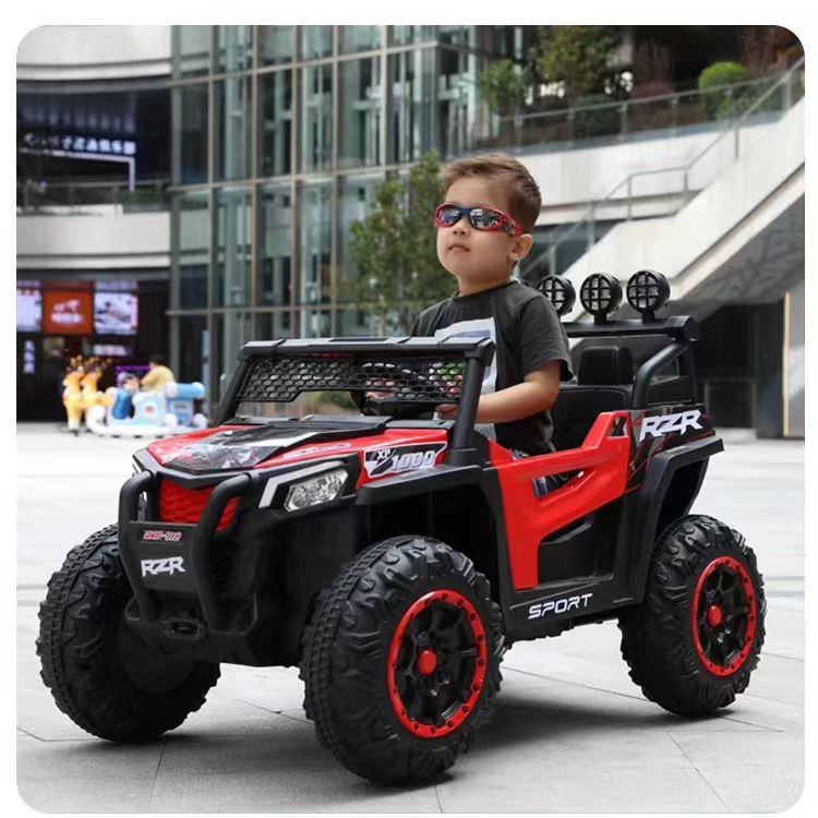 Safe ride on Jeep is composed of a non-toxic plastic body and a 4-wheel design for added safety. Built with a vibrant colorful frame, LED lights, daring stickers, Forward and backward, music, lights, rear wheel suspension, early education function, music, story, English, battery display,USB port, MP3 port and integrated music and horn sound. Electric kids jeeps includes: 2 Motor + Swing , 12V battery and charger, gear shift switch, rearview mirrors and foot pedal control and remote-control facilities as well as phone application facilities